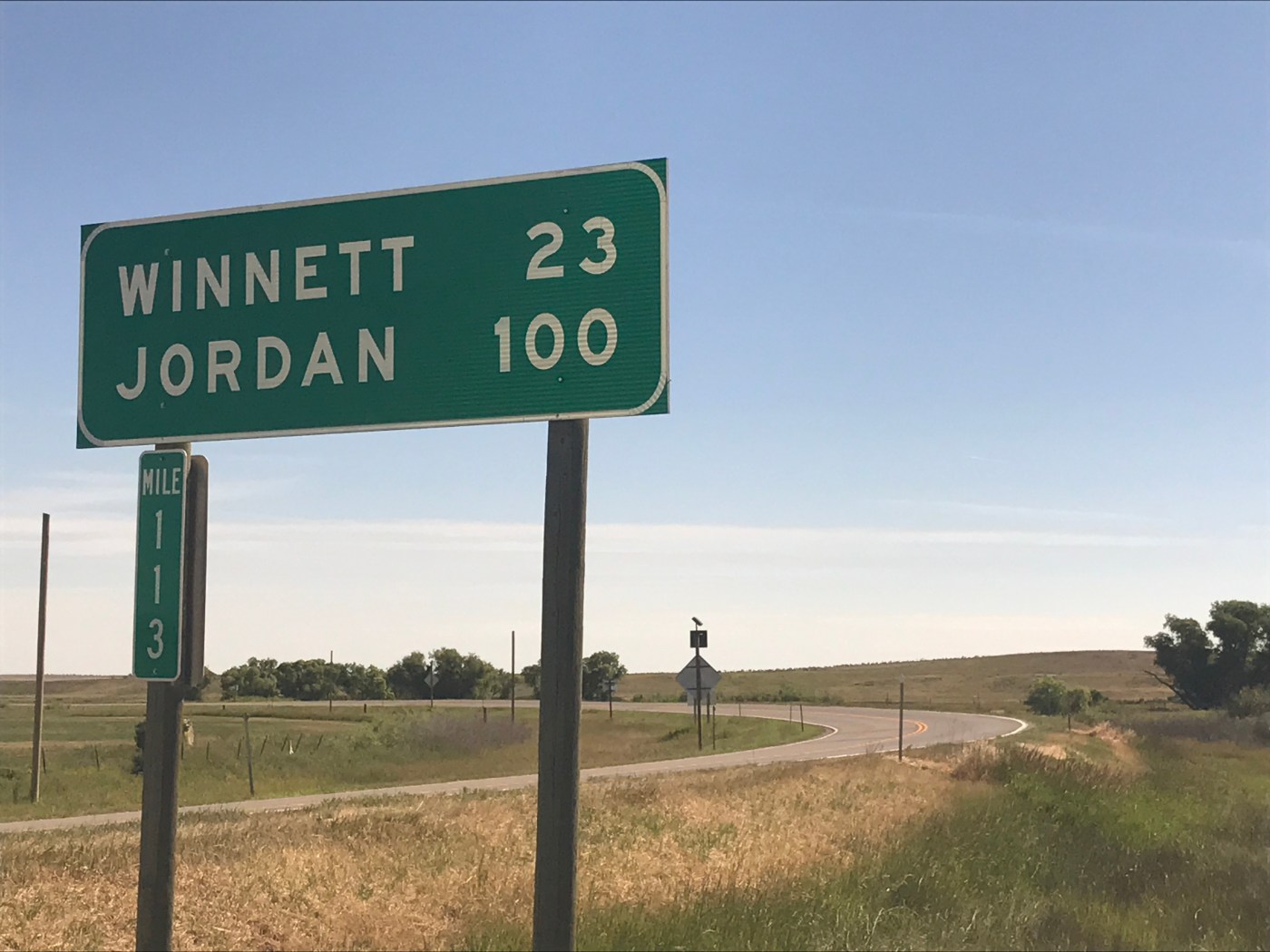 The last few days haven’t been quite as “easy” as the first few. Longer distances, hotter temps, unfavorable winds, and the cumulative wear and fatigue have made the miles seem a bit tougher. Yesterday was particularly tough—a 130 mile slog from Lewistown to Jordan. I stopped at Winnett about 50 miles into the ride at the only restaurant in town, the Kozy Korner, apparently famous for its homemade pies. I opted for coffee and a bowl of Wilcoxson’s ice cream. It cost a whopping $1.50. Later, with about 30 miles to go and the afternoon heat bearing down on us, we found an oasis in Sand Springs that served real milkshakes. I know it’s circumstantial, but it might’ve been the best milkshake I’ve ever had. The milkshake, plus copious amounts of ice water and sports drink, saved the day. So I have to give credit to ice cream and milkshakes for getting me through Saturday. I know Cristin won’t mind in this situation.