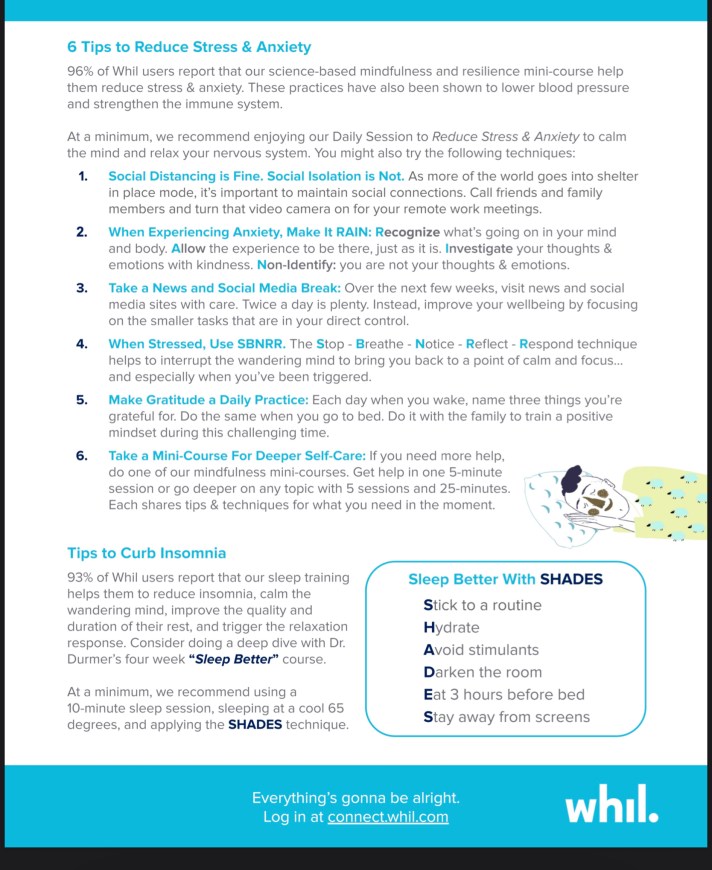 Our wellbeing and mindfulness partner Whil shared some expert tips with us for staying mentally and emotionally healthy during the COVID pandemic, and we wanted to pass them along to you!