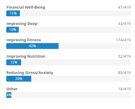 We often challenge you to set out some goals for the new year, so we asked “What is your primary focus area of well-being that you are currently working to improve?” Here are the results: